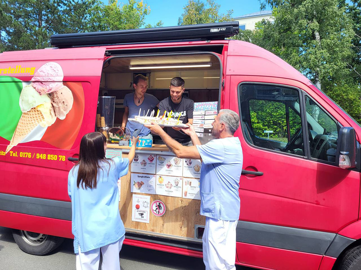 Am 19. August 2025 erlebten die Bewohnerinnen und Bewohner des BRK-Ruhesitzes Bayreuth einen ganz besonderen Nachmittag: Bei strahlendem Sommerwetter gab es für alle kostenlos Eis – gespendet vom Bounce Trampolin & Funpark Bayreuth.